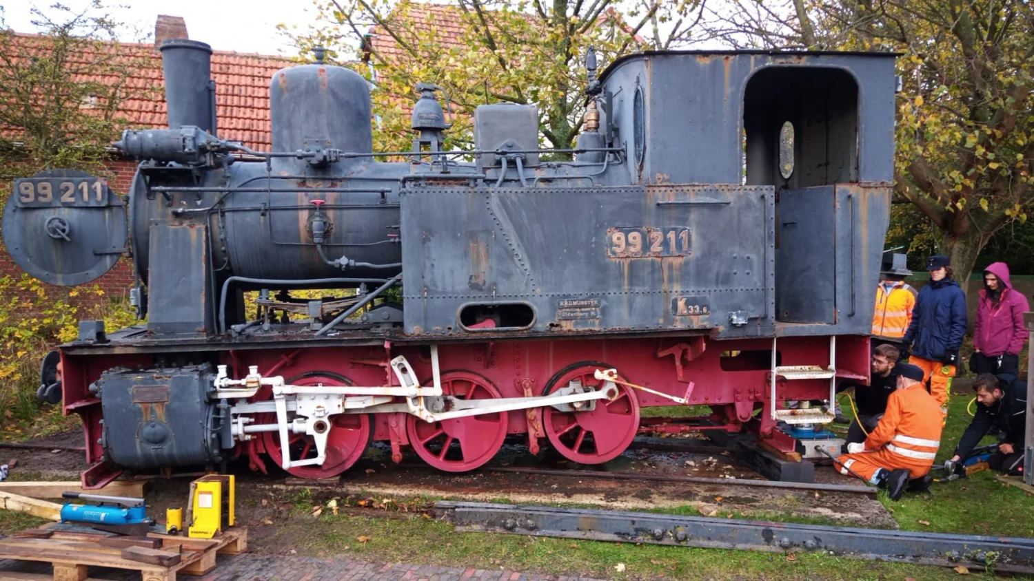 Im Leben einer Inselbahn ist es ein äußerst seltenes Spektakel: Die Bevölkerung von Wangerooge hat Gelegenheit, sich von Klärchen zu verabschieden und sie mit Muskelkraft zum Bahnhof zu ziehen. Gemeint ist die kleine Dampflok 99 211, die über Jahrzehnte bei der Inselbahn Dienst tat und ebenfalls seit Jahrzehnten auf dem frei stehenden Denkmalssockel am Alten Leuchtturm steht. Doch die salzhaltige Inselluft hat Klärchen stark zugesetzt, der äußere Zustand beklagenswert. Doch schlimmer noch: Es war der Zerfall der Lok zu befürchten.